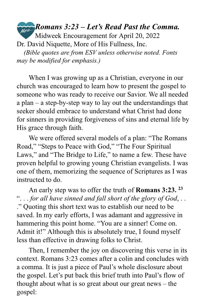 Romans 3:23 – Let’s Read Past the Comma.
